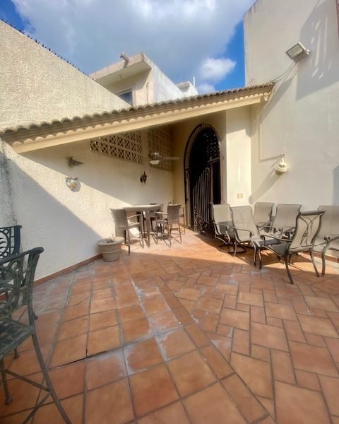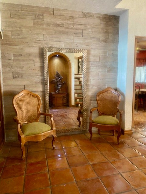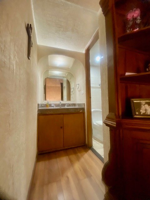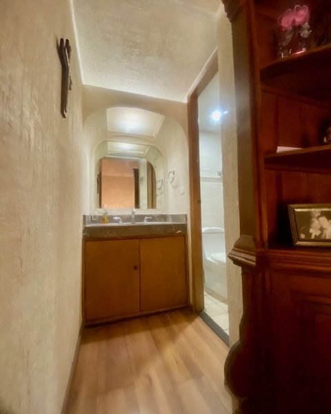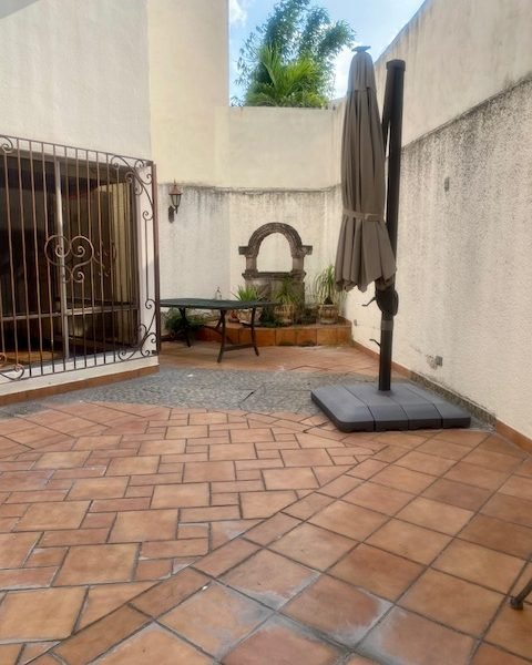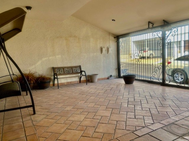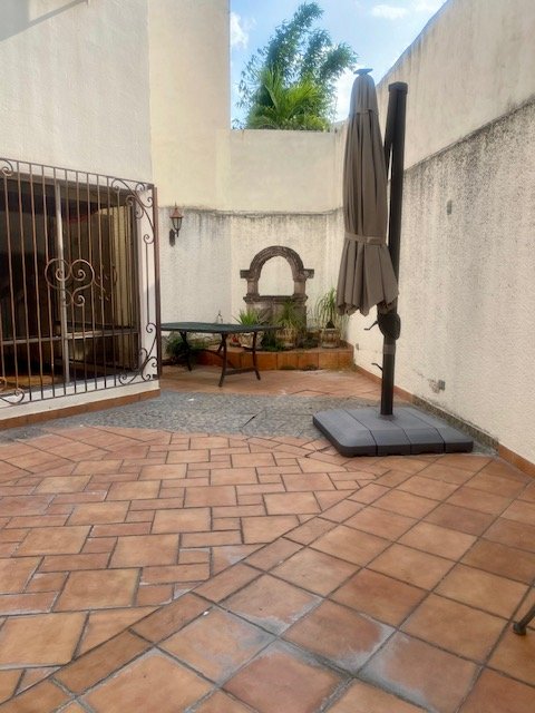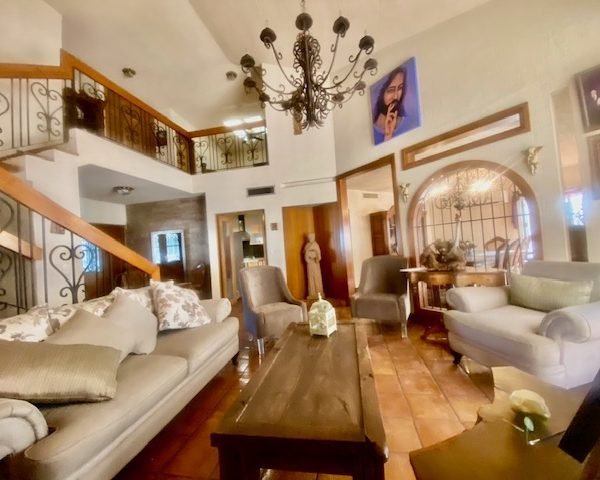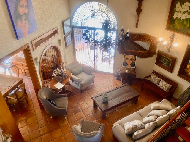 Descripción: casa con cochera techada para 2 autos, entrada peatonal con dos entradas: entrada principal con pórtico; entrada de servicio hacia cocina. tiene una fuerte construcción estilo mexicano contemporáneo. cuenta con recibidor, 1/2 baño, sala con doble altura, comedor, cocina con antecomedor. patio con salida desde sala y también del comedor. lavandería. cuarto de servicio de buen tamaño con baño. pasillo lateral. escaleras voladas de madera sólida en doble altura de sala hacia la segunda planta. distribuidor, estancia. dos amplias recámaras secundarias con closet que comparten baño. recámara principal con baño-vestidor. casa con muy buenos espacios sociales abiertos. Excelente sector de san jerónimo.