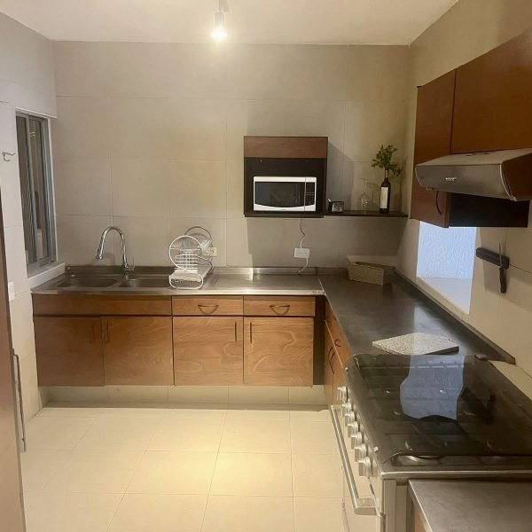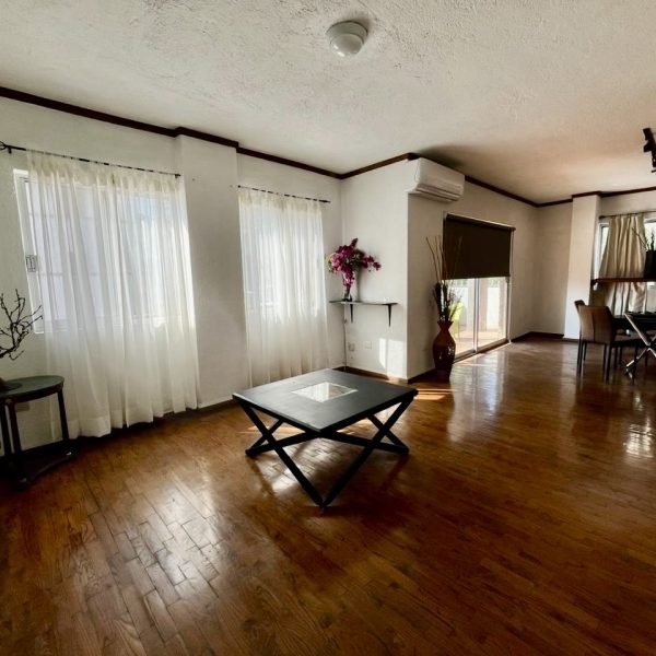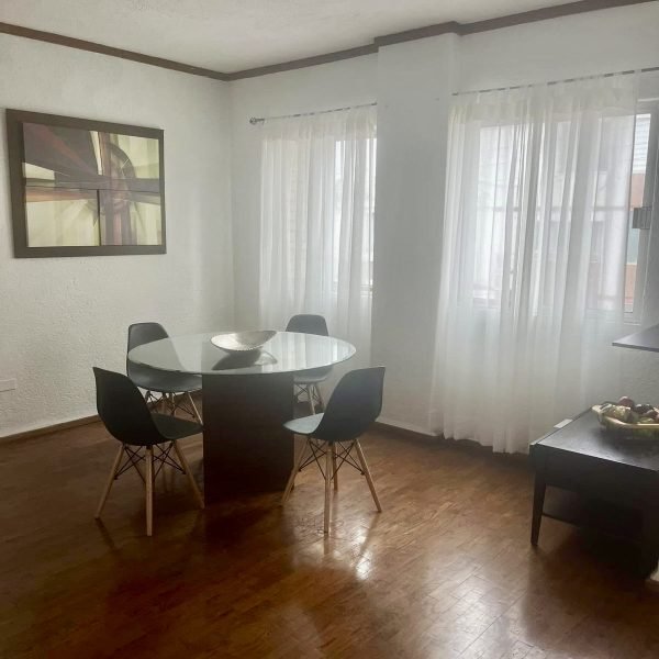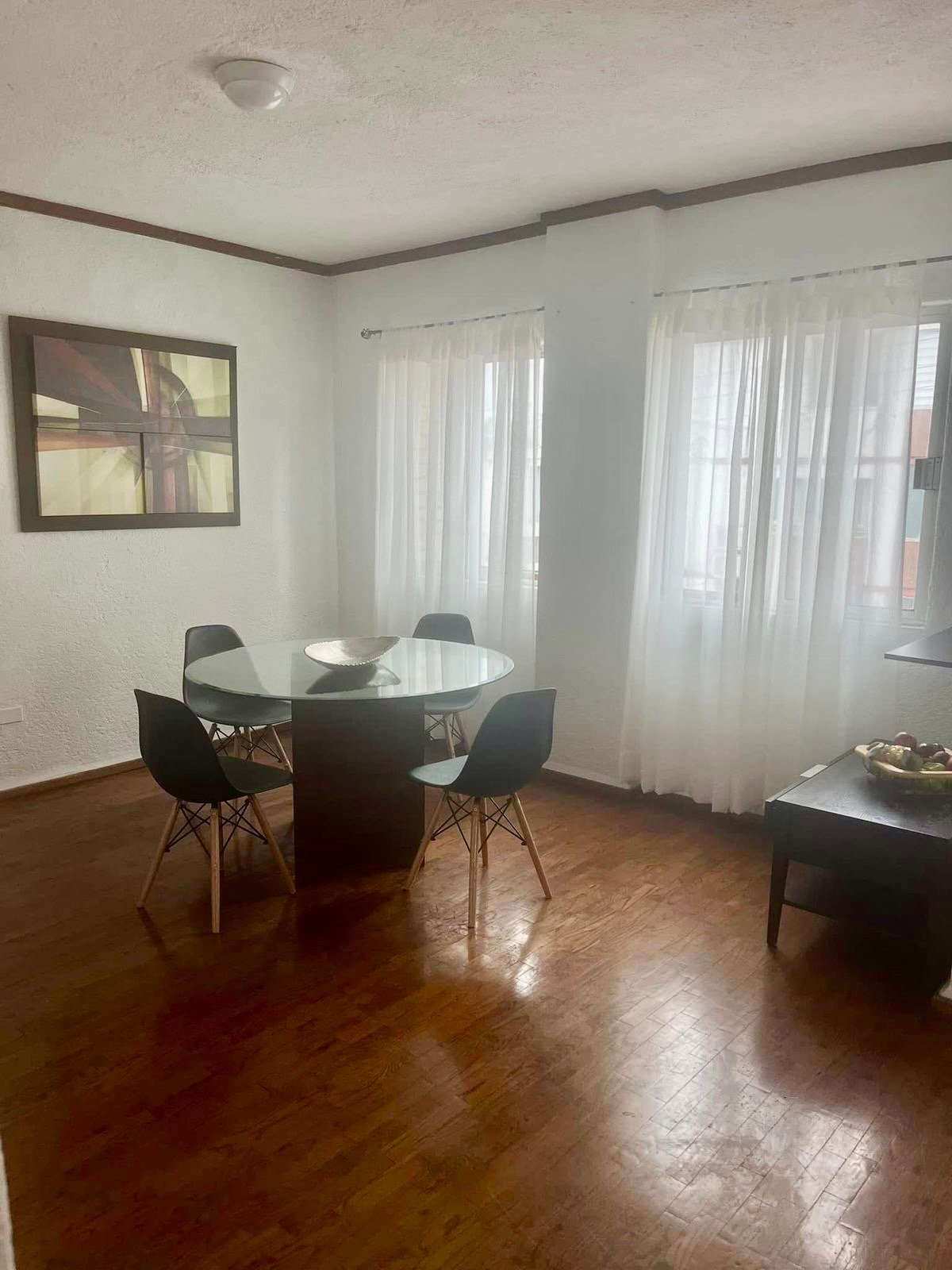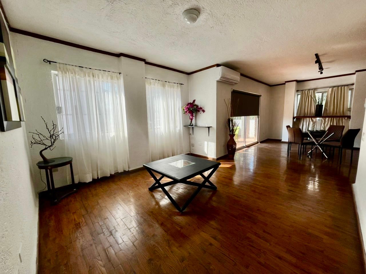 Descripción: Departamento amueblado y equipado en segundo piso(no elevador) con montacargas desde estacionamiento. Cuenta con recibidor, sala, comedor y balcón, cocina, lavandería y baño de servicio. Dos recámaras con amplios closets y baño. Otro espacio para oficina, estancia, etc.