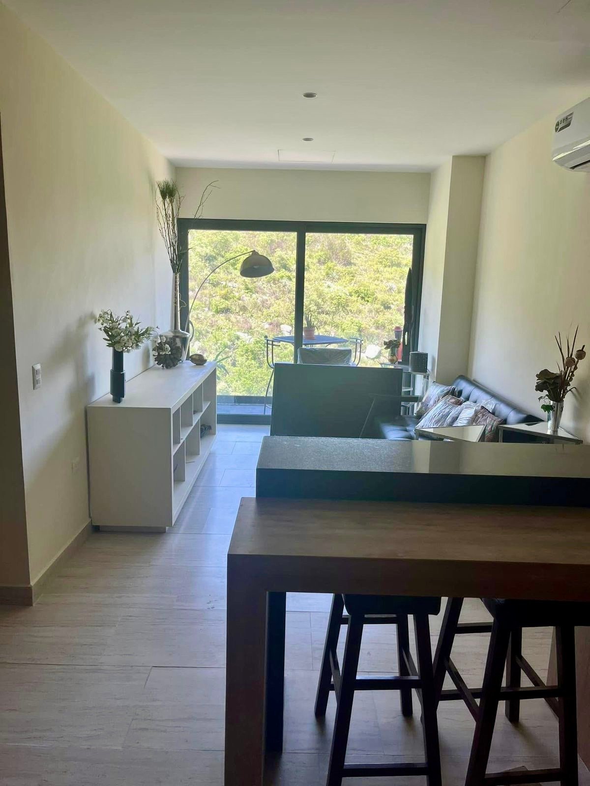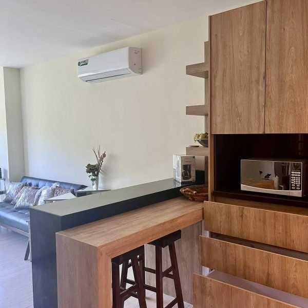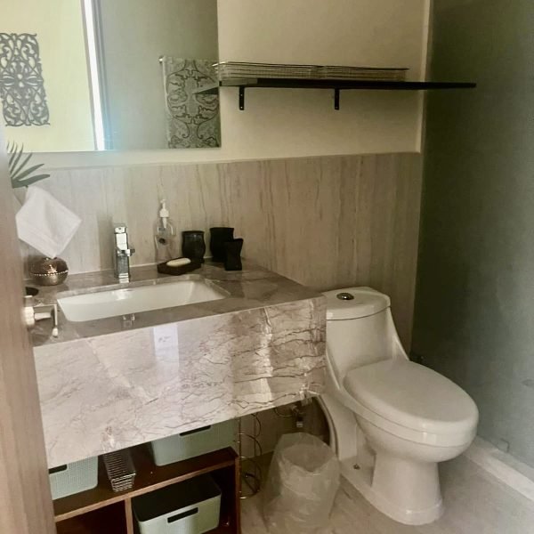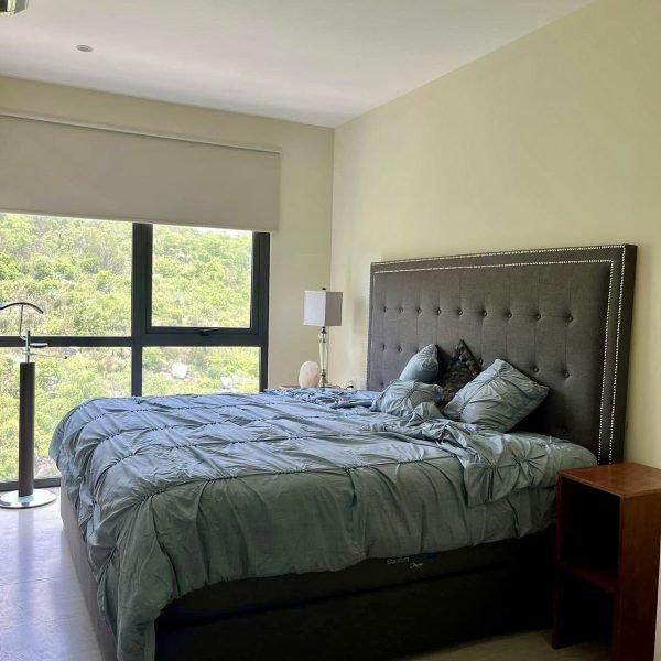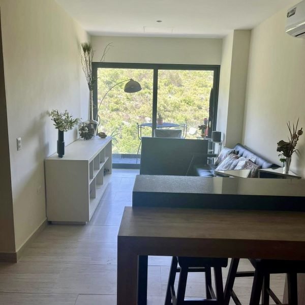 Descripción: Departamento nuevo, 1 año de uso, piso 9, equipado y amueblado de buen gusto. Cuenta con cocina con barra desayunador, área de lavandería, sala con balcón. Recámara principal con baño-vestidor. Recámara secundaria con closet que comparte baño con área social.