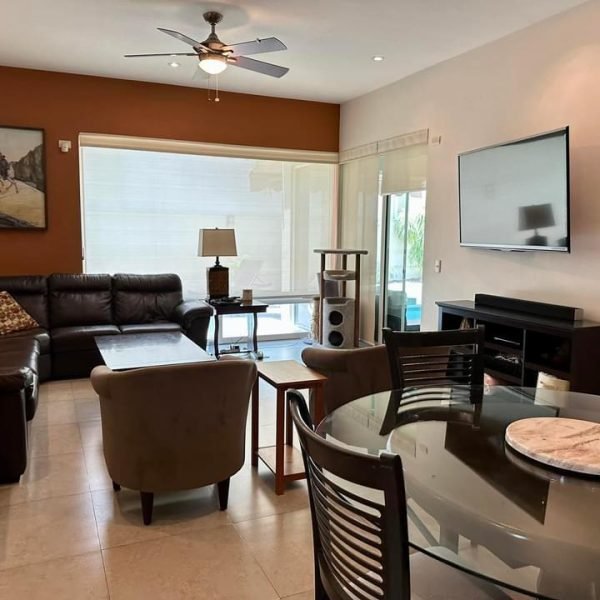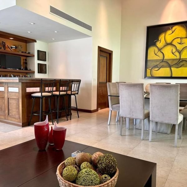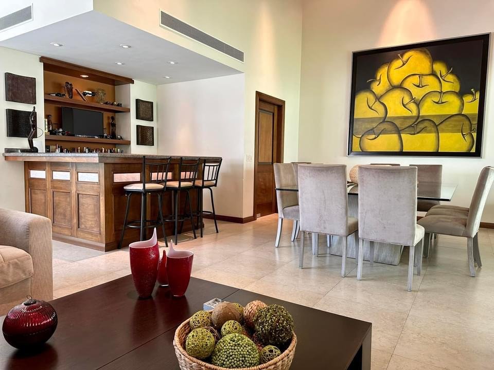 • Amplia Sala Comedor con área de bar amueblada (living Room)