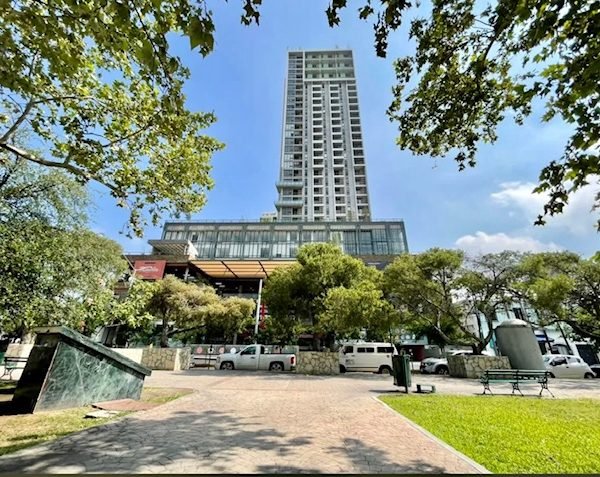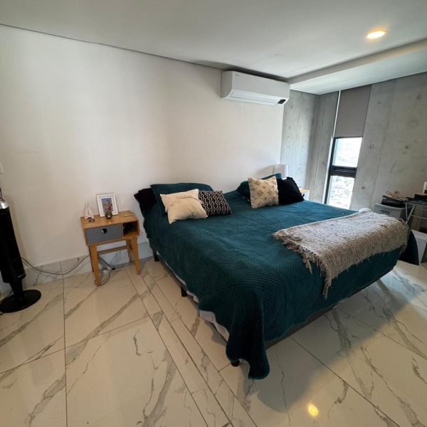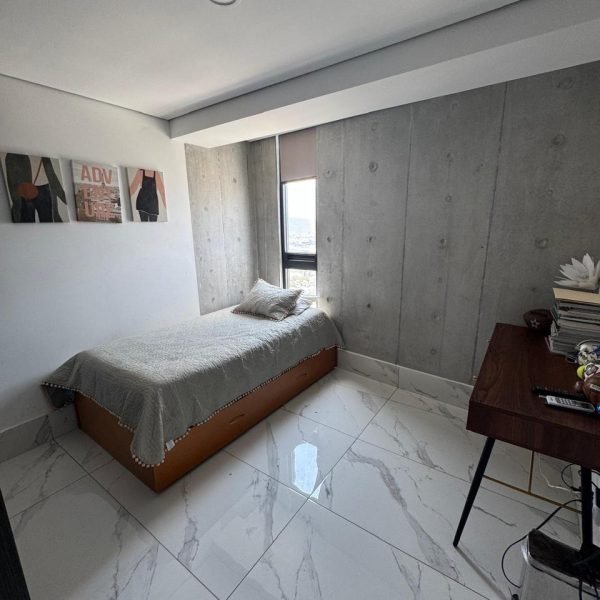 Descripción: Departamento con 2 cajones de estacionamiento, en la privacidad del piso 27, cuenta con cocina, sala-comedor con balcón, doble altura pues cuenta con la recámara principal en segundo piso amplia y con baño vestidor. En primer piso está otra recámara con closet y baños.