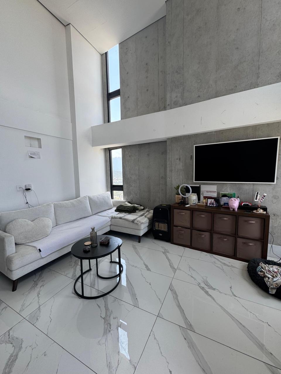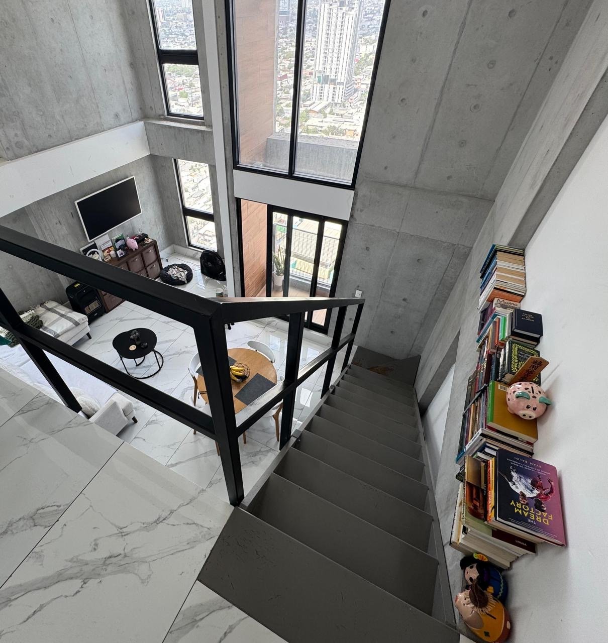 Accesorios: Frente  a plaza la Purísima, súper bien ubicado con pisos tipo mármol, espacios amplios por la doble altura, recámara en planta baja, posibilidad de topanco en sala. 2 minisplit, cocina modular, closets, baños con lavabos, lavanetas y espejos. Amenidades: Salas para reuniones, gym, alberca, asadores, comercio y restaurantes en la PB.